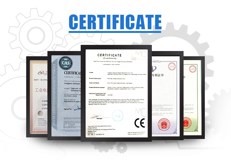 Longkou Haiyuan Plastic Machinery Co.,Ltd founded in 1999 is a professional manufacturer in producing PS foam sheet extrusion line,PS fast food box (disposable products) production line disposable take away food container, foam thermocol plate tray box making machine, PS foam disposable food box plate, absorbent tray dish making machine.foam foam false ceiling maching machine etc.With strong technical strength and abundant experence,basis on advance,technology from domestic and abroad.our machines are already exported to Russia, Egypt,India,Malaysia,Turkey and Thailand etc.
